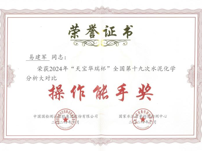 近日,由國(guó)家水泥質(zhì)量檢驗(yàn)檢測(cè)中心主辦的“天寶華瑞杯”全國(guó)第十九次水泥化學(xué)分析大對(duì)比總結(jié)表彰暨技術(shù)研討會(huì)在廣西南寧召開(kāi),湖南省建筑材料質(zhì)量監(jiān)督檢驗(yàn)授權(quán)站(以下簡(jiǎn)稱(chēng)“省建材質(zhì)檢站”)斬獲特等獎(jiǎng),易建軍獲得化學(xué)分析“操作能手”榮譽(yù)稱(chēng)號(hào),再創(chuàng)佳績(jī)。